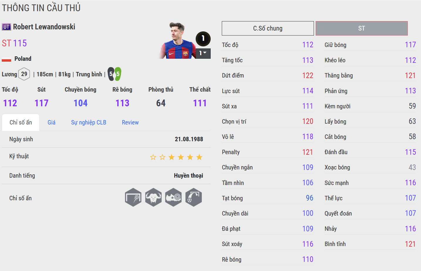 Lewandowski UT đại diện cho chuẩn mực của một trung phong hiện đại: thể hình lý tưởng, xử lý bóng chắc chắn và dứt điểm lạnh lùng. Khả năng làm tường tốt kết hợp với chọn vị trí thông minh giúp anh trở thành điểm tựa vững chắc trên hàng công. Đây là mẫu tiền đạo mang lại sự ổn định và hiệu quả lâu dài trong mọi sơ đồ chiến thuật.