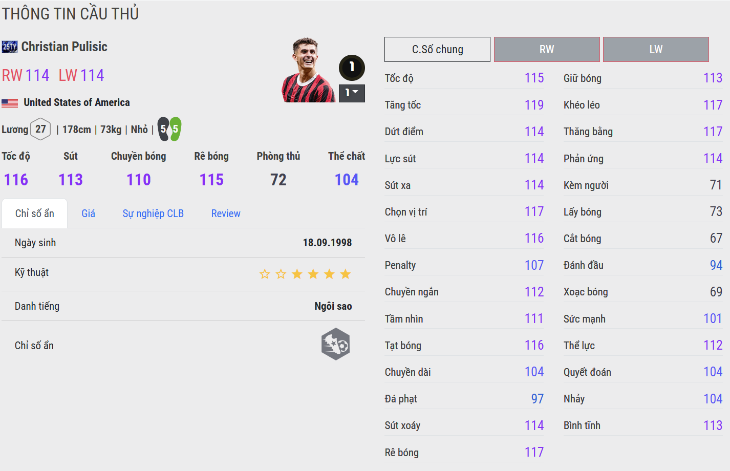 Không ngạc nhiên khi Salah là lựa chọn số một cho vị trí này. Anh sở hữu tốc độ, thể lực bền bỉ, khả năng dứt điểm sắc bén và AI di chuyển cực kỳ thông minh. Salah không chỉ hỗ trợ đồng đội tốt mà còn là mối đe dọa thực sự trước khung thành đối phương.