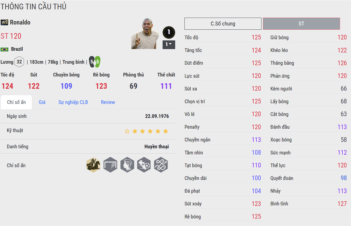 Đứng đầu bảng xếp hạng là CR7 WS – sát thủ toàn diện bậc nhất. Anh sở hữu thể hình lý tưởng, khả năng không chiến vượt trội, tốc độ bứt phá và những cú dứt điểm chuẩn xác. Với CR7 WS, mọi HLV đều có trong tay một quân bài chủ lực có thể định đoạt trận đấu bất cứ lúc nào.