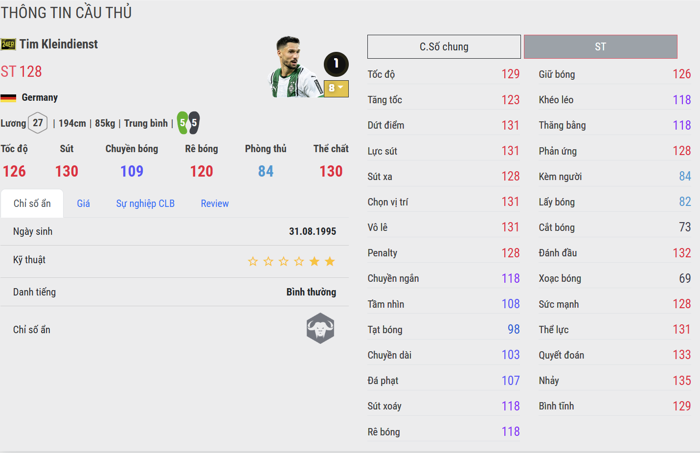 Kleindienst 24EP là bất ngờ thú vị của meta hiện tại. Với thể hình lý tưởng, khả năng làm tường chắc chắn và sự áp đảo trong tranh chấp, anh trở thành lựa chọn chiến thuật hữu hiệu cho những HLV ưa thích lối chơi thiên về sức mạnh. Trong gameplay, Kleindienst đặc biệt lợi hại trong các pha bóng bổng và tình huống cố định.