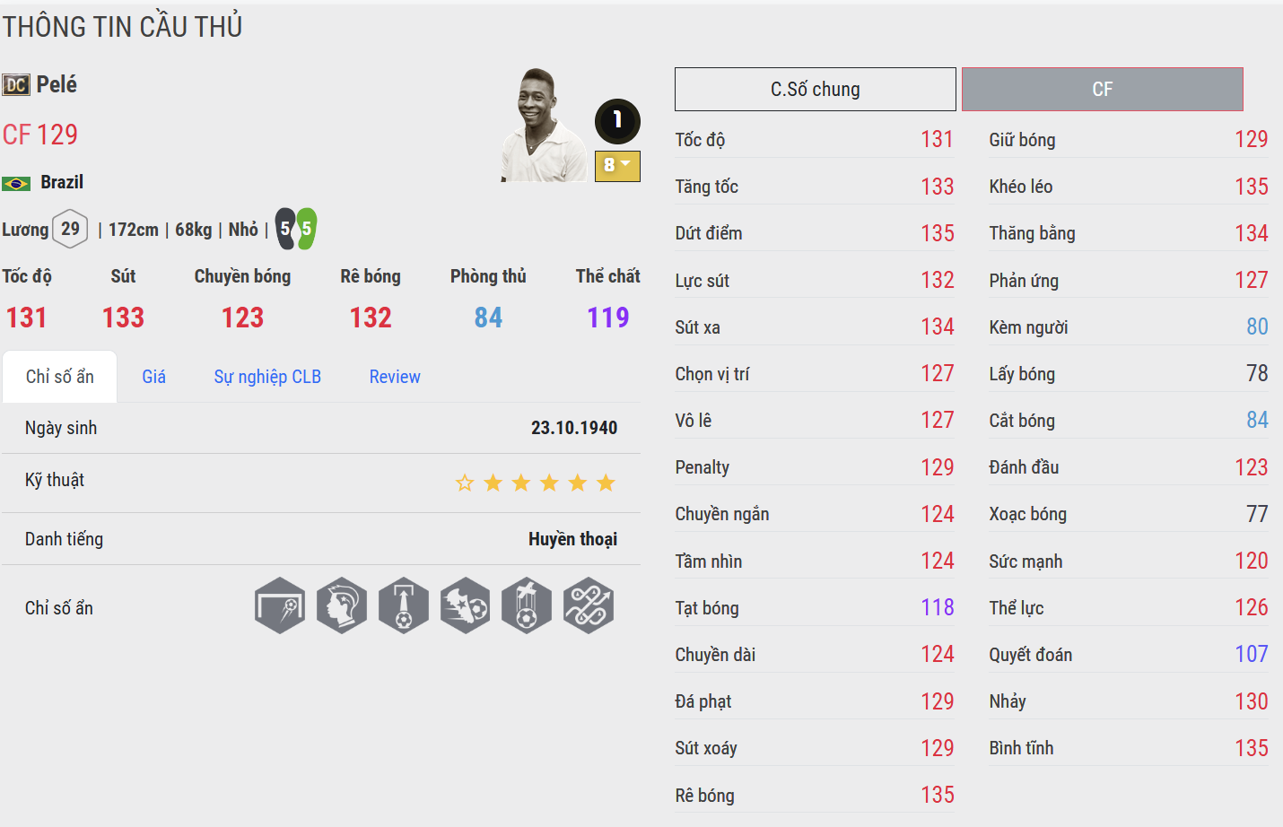Pelé DC vẫn là cái tên giữ vị trí số một, biểu tượng của sự hoàn hảo. Anh sở hữu tốc độ, sự khéo léo, kỹ thuật điêu luyện cùng khả năng dứt điểm toàn diện. Trong gameplay, Pelé chính là “con át chủ bài”, đủ sức xoay chuyển cục diện trận đấu bằng những khoảnh khắc bùng nổ mang đậm dấu ấn huyền thoại.