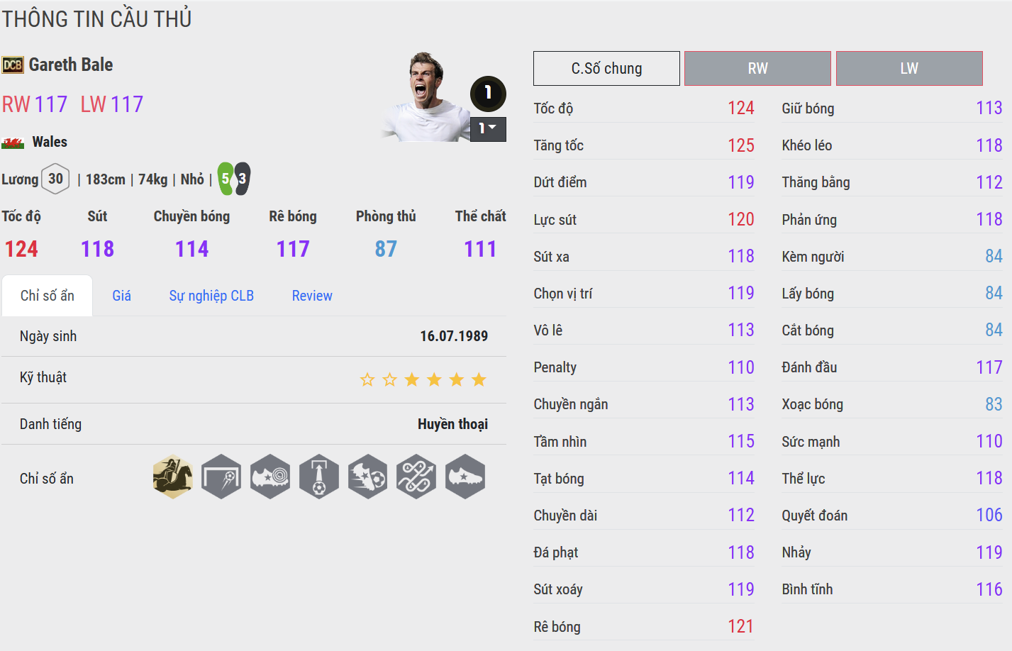Bale DCB nổi bật với tốc độ đường dài, sức mạnh tì đè và những cú sút xa như búa bổ. Trong gameplay, anh là mũi công lợi hại vừa có thể bứt tốc dọc biên, vừa bó vào trung lộ để tung cú nã đại bác. Thể hình to lớn nhưng vẫn linh hoạt giúp Bale mang đến cảm giác vừa mạnh mẽ vừa uy lực mỗi khi lên bóng.