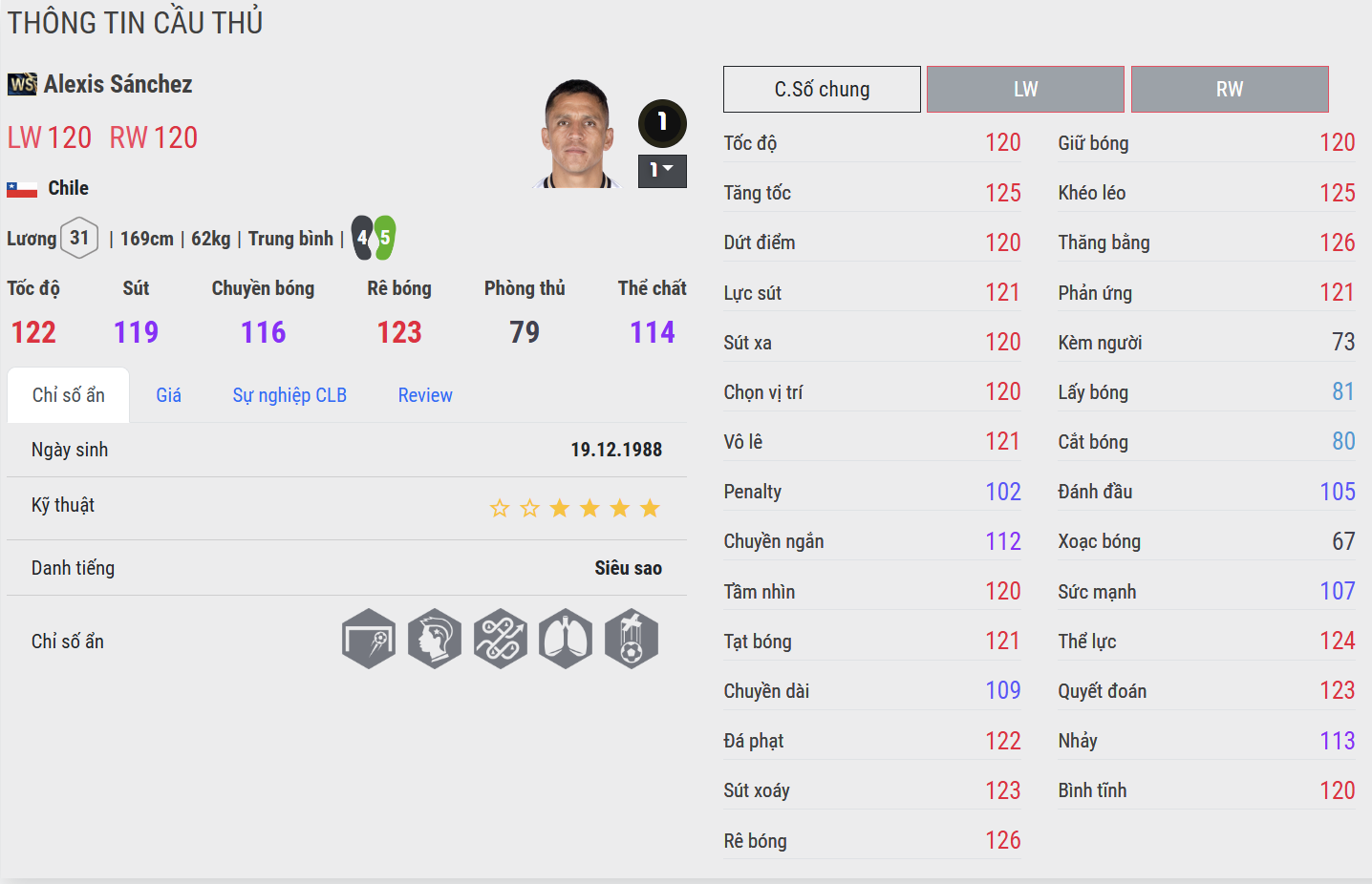 Ngôi sao người Chile mang đến hình ảnh một “chiến binh biên” đúng nghĩa. Sanchez WS sở hữu tốc độ bứt phá, khả năng rê bóng giàu năng lượng và lối chơi không biết mệt mỏi. Trong gameplay, anh luôn di chuyển tích cực, sẵn sàng pressing và tạo áp lực ở mọi khu vực. Mỗi pha xử lý của Sanchez toát lên tinh thần máu lửa, khát khao chiến thắng – một mẫu cầu thủ nhỏ con nhưng mang trái tim của kẻ chinh phục.