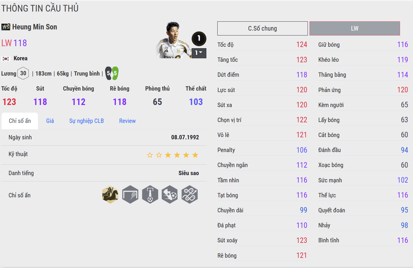 Với tốc độ và khả năng dứt điểm hai chân như nhau, Son WS là cơn ác mộng với mọi hàng phòng ngự. Anh di chuyển thông minh, chọn vị trí sắc bén và luôn biết cách tung ra cú ra chân quyết đoán ở thời điểm quan trọng. Trong trải nghiệm thực chiến, Son WS tỏ ra cực kỳ hiệu quả khi đá phản công nhanh hoặc chơi như inside forward – nơi anh có thể bó vào trong và tung cú cứa lòng đặc sản. Một lựa chọn lý tưởng cho lối đá tốc độ và trực diện.