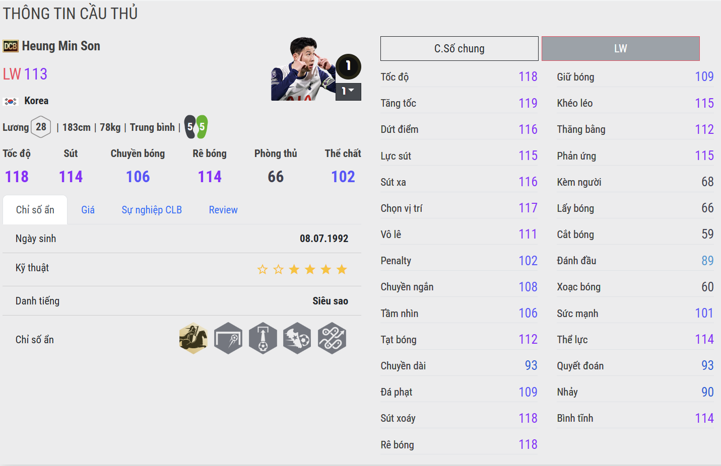 Son DCB mang đến sự toàn diện hiếm thấy. Anh tốc độ, dứt điểm tốt bằng cả hai chân và có thể đảm nhận nhiều vai trò trên hàng công. Trong gameplay, Son cực kỳ lợi hại ở những pha thoát xuống đối mặt thủ môn hoặc tung cú sút xa bất ngờ. Đây là mẫu cầu thủ vừa bùng nổ, vừa hiệu quả, luôn đem lại sự an tâm khi có mặt trên sân.