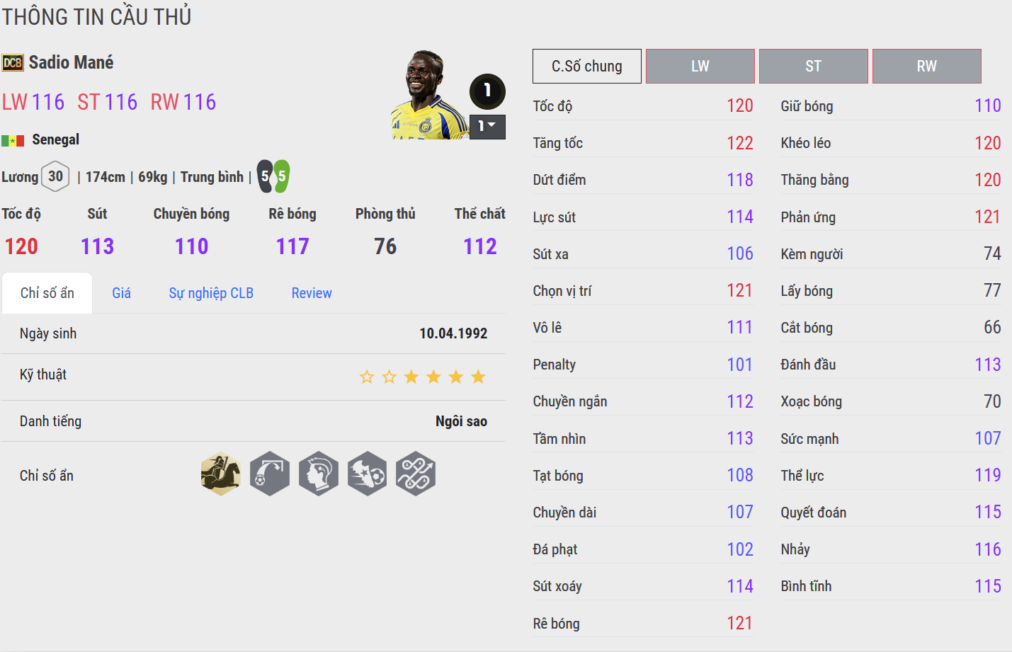 Mané DCB là sự kết hợp giữa tốc độ và sức mạnh. Anh mạnh mẽ trong tranh chấp, giàu năng lượng và quyết đoán trong từng pha bứt phá. Trong gameplay, Mané không chỉ giỏi rê bóng vượt người mà còn rất tích cực pressing, mang đến sự máu lửa cho hành lang cánh và luôn tiềm ẩn khả năng ghi bàn từ những pha xâm nhập vòng cấm.