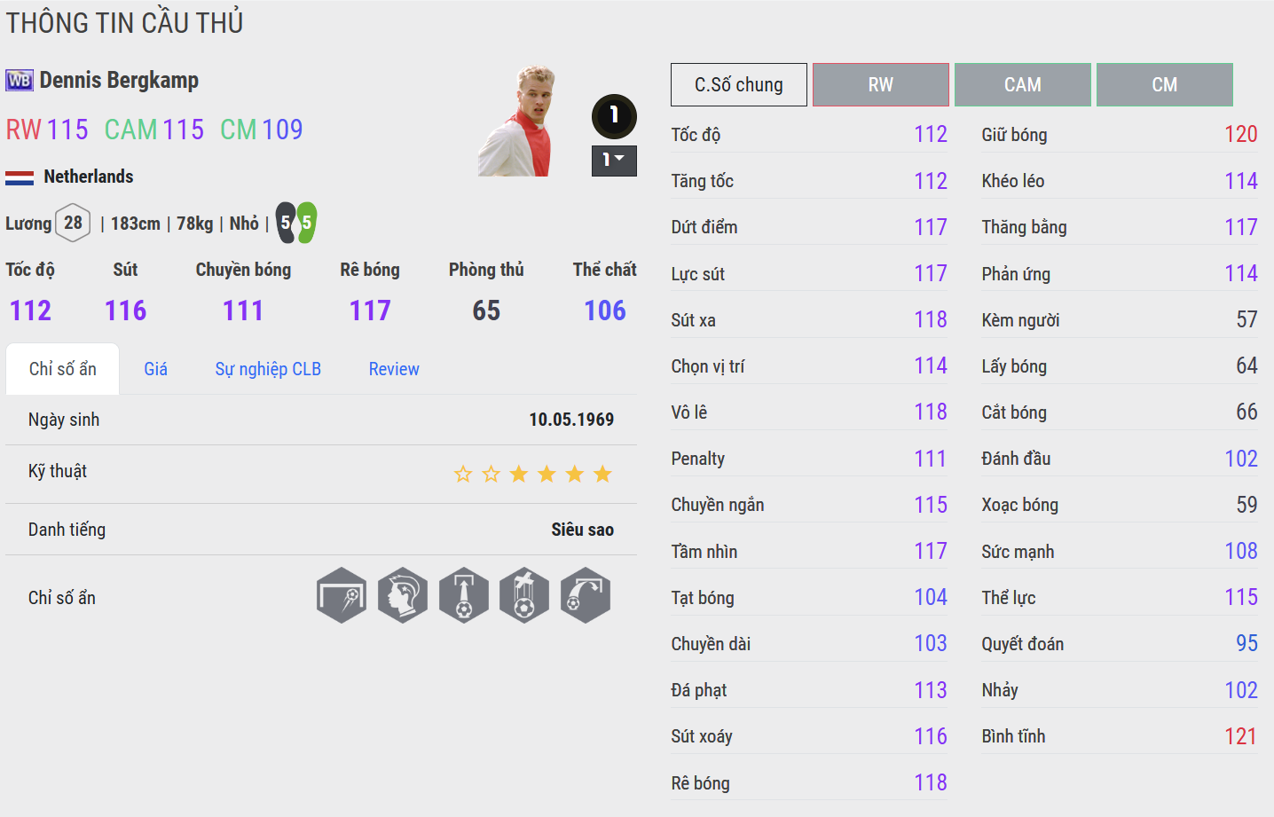 Tinh tế và sắc lạnh. Bergkamp WB là định nghĩa của vẻ đẹp tối giản trong bóng đá. Kỹ năng xử lý gọn gàng, sút bóng uy lực và khả năng giữ nhịp lối chơi giúp anh trở thành "điểm lặng chết người" ngay trước vòng cấm đối phương.