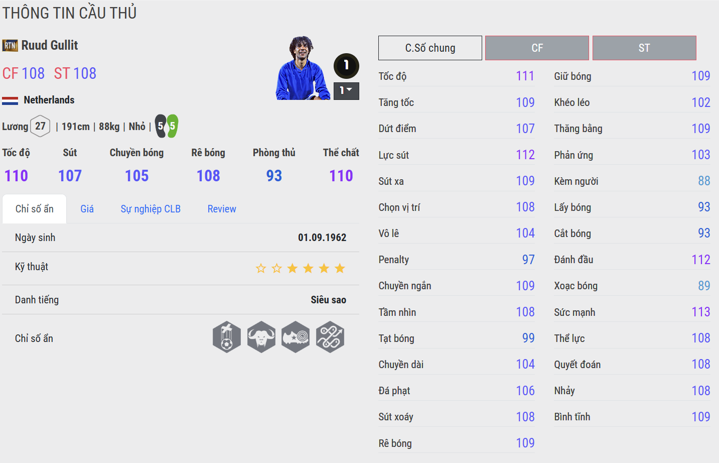 Gullit RTN là mẫu CAM “siêu toàn diện”. Anh mạnh mẽ trong tranh chấp, dứt điểm tốt cả hai chân và có tầm ảnh hưởng khắp mặt sân. Không chỉ kiến tạo, Gullit còn có thể trực tiếp ghi bàn hoặc kéo bóng như một thủ lĩnh thực sự. Đây là cái tên phù hợp cho những sơ đồ thiên về sức mạnh, nơi cần một CAM có thể gánh vác lối chơi toàn đội.