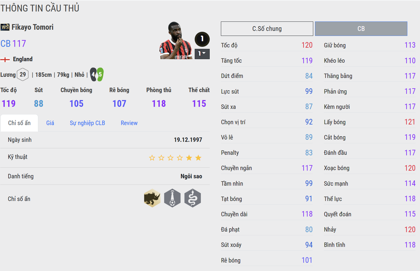 Tomori WS là mẫu trung vệ giàu tốc độ và phản xạ, luôn mang đến sự an tâm trong những tình huống một đối một. Điểm mạnh lớn nhất của anh nằm ở khả năng đọc tình huống nhanh nhạy, bứt tốc cực tốt và cắt bóng chính xác. Dù không sở hữu thể hình quá vượt trội, Tomori lại bù đắp bằng sức rướn, độ linh hoạt và phong cách thi đấu quyết liệt. Anh phù hợp với những đội hình thiên về pressing và phòng ngự tầm cao.