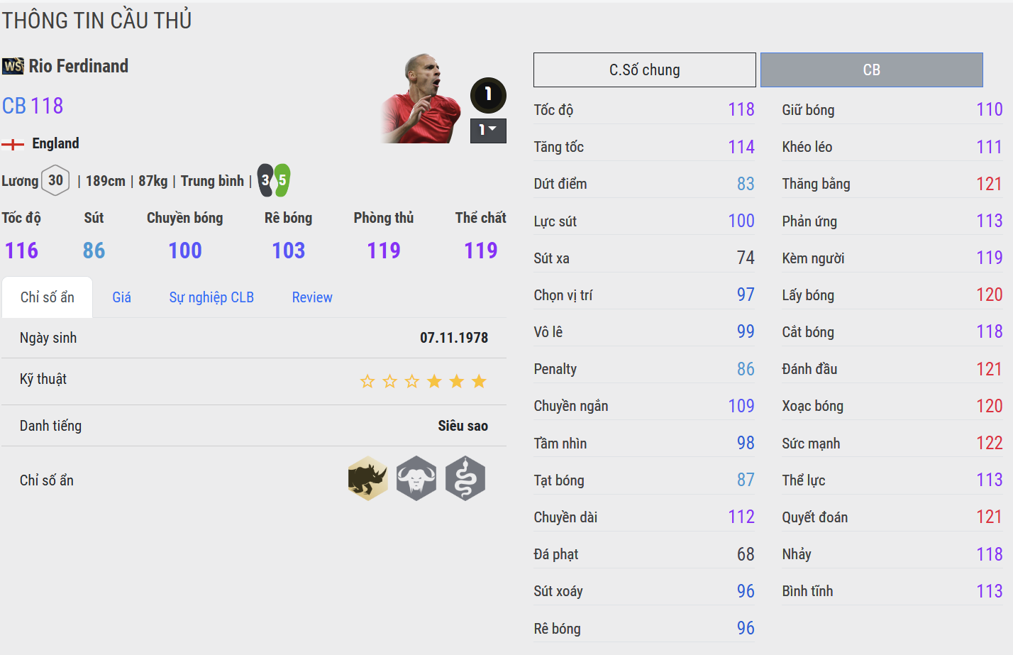 Ferdinand WS mang dáng dấp của một trung vệ cổ điển – mạnh mẽ, tỉnh táo và cực kỳ chắc chắn trong từng pha xử lý. Anh sở hữu khả năng phán đoán tình huống xuất sắc, chọn vị trí thông minh và đặc biệt hiệu quả trong những pha không chiến. Điểm cộng lớn nằm ở sự điềm tĩnh khi xử lý bóng, giúp anh dễ dàng thoát pressing và phát động phản công. Ferdinand WS là lựa chọn hoàn hảo cho lối đá cân bằng, ưu tiên sự ổn định.