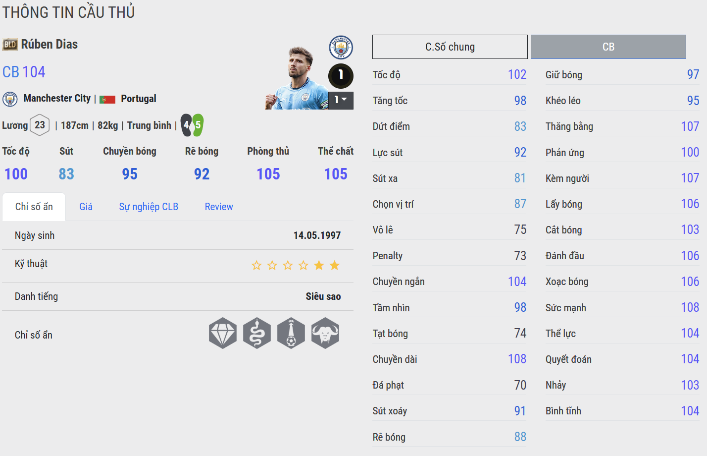 Vị trí trung vệ hiếm khi nhận được nhiều đề cử cho danh hiệu Quả bóng Vàng, vì vậy ở mùa thẻ BLD, số lượng trung vệ xuất sắc không quá phong phú.