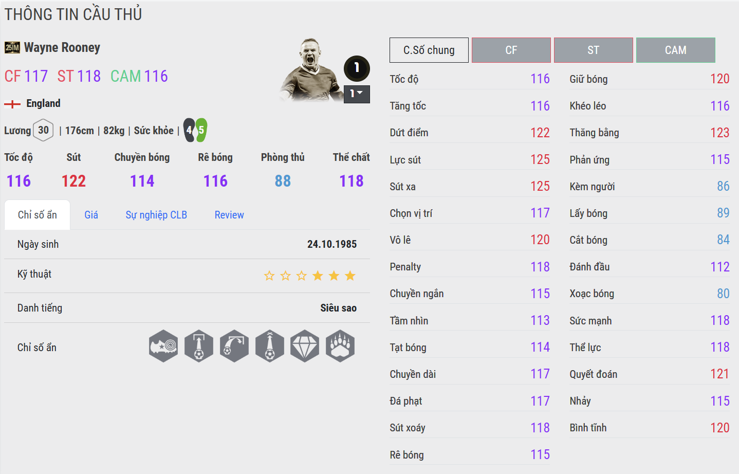 Không chỉ biết ghi bàn, Rooney 25IM còn là một cầu thủ chuyền bóng rất chất lượng. Anh có thể tung ra những đường chọc khe tinh tế hoặc phất bóng dài cực chuẩn nhờ tầm nhìn tốt. Các pha bật nhả với đồng đội được Rooney xử lý nhanh, gọn, gần như không thừa động tác. Chính điều này khiến anh hoạt động linh hoạt giữa các vai trò: vừa có thể đá ST, vừa có thể chơi như một CF hoặc CAM hỗ trợ tấn công. Nếu đội hình của bạn cần một cầu thủ vừa biết ghi bàn, vừa biết tạo cơ hội, Rooney 25IM là sự lựa chọn hàng đầu.